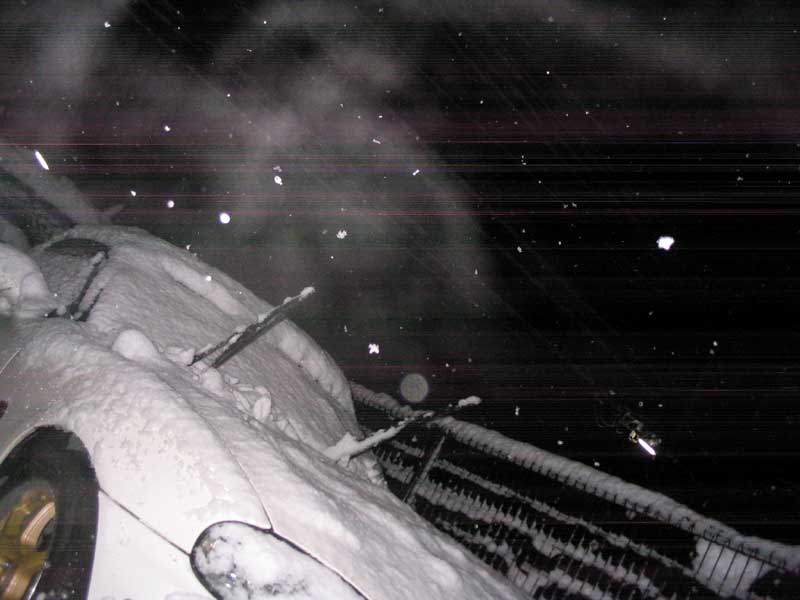 その後もスタック寸前、ホイルスピン全開で なんとか家にたどり着き 駐車場へ車をほおりこんだ、駐車場では多少の雪かきしつつ入庫