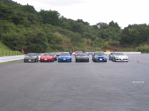 狭いジムカーナ場とはいえ 余裕で車を6台なれべられるコース幅を確保しています