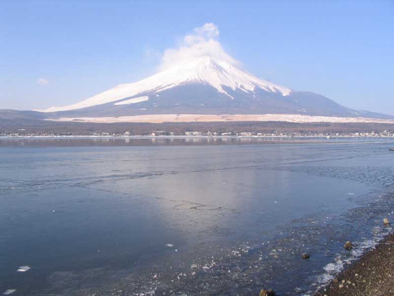 おぉ、山中湖に氷が張ってるよ、チョッとびっくり