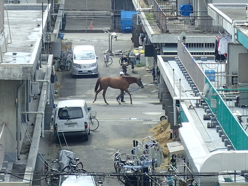目の前が競馬場だからって 駅前に馬が歩いてるし~