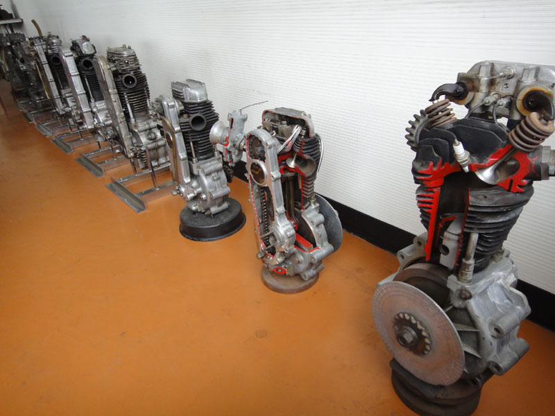 会議室には歴代?のオートレース用エンジンのカットモデルがズラリ
