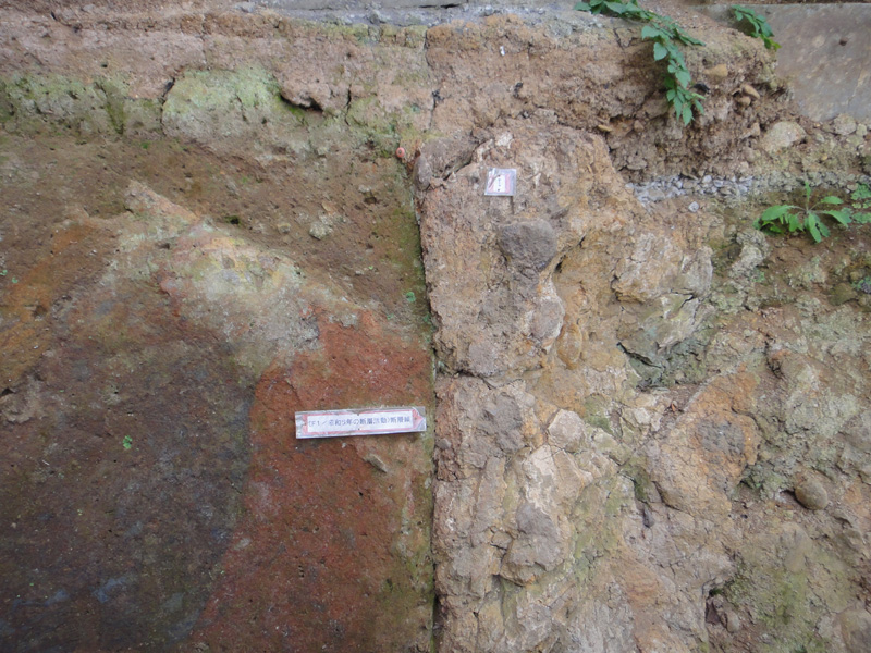 赤い看板が断層の位置、水路が2mくらいずれてます