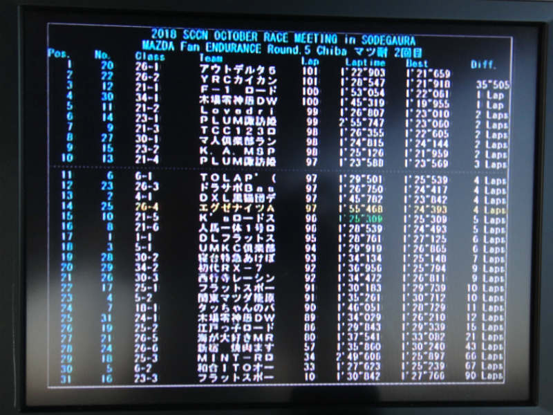 で、ガス欠でコース上に止まっちゃった車ありでのSC登場で そのままゴール
