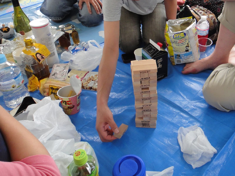 長旅は甲板で 仲間と酒とジェンガで!