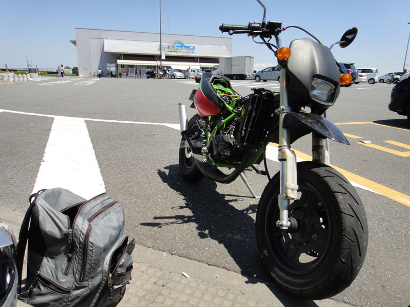 道の駅でジェットニードルの位置調整中