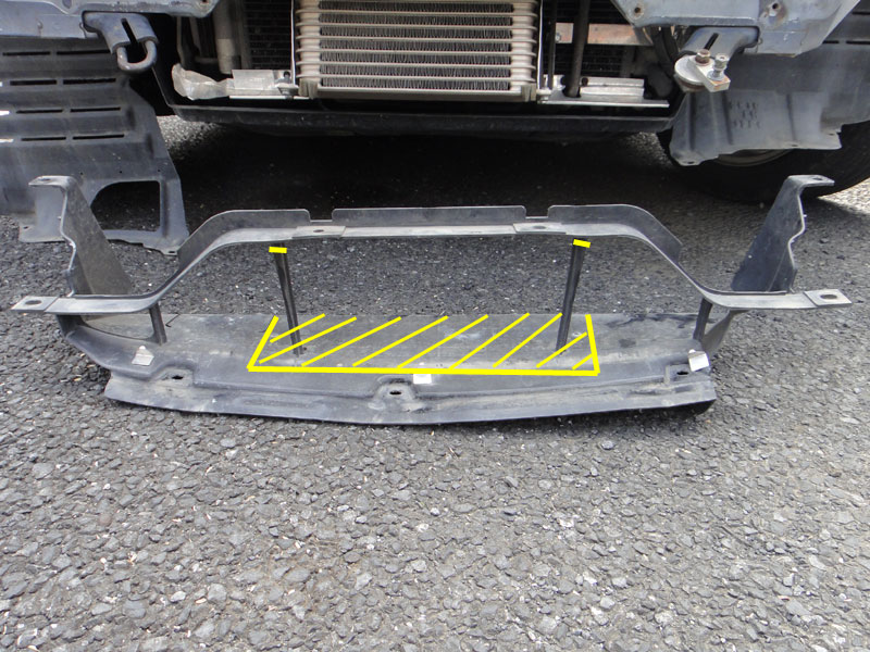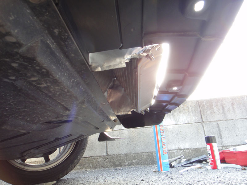 今まではオイルクーラーの熱でコンデンサーに熱を与えないようオイルクーターの後ろにカバーを設置、カバーでめ抑えられた熱はラジエターとエンジンのアンダーガードの狭い隙間に導いていた