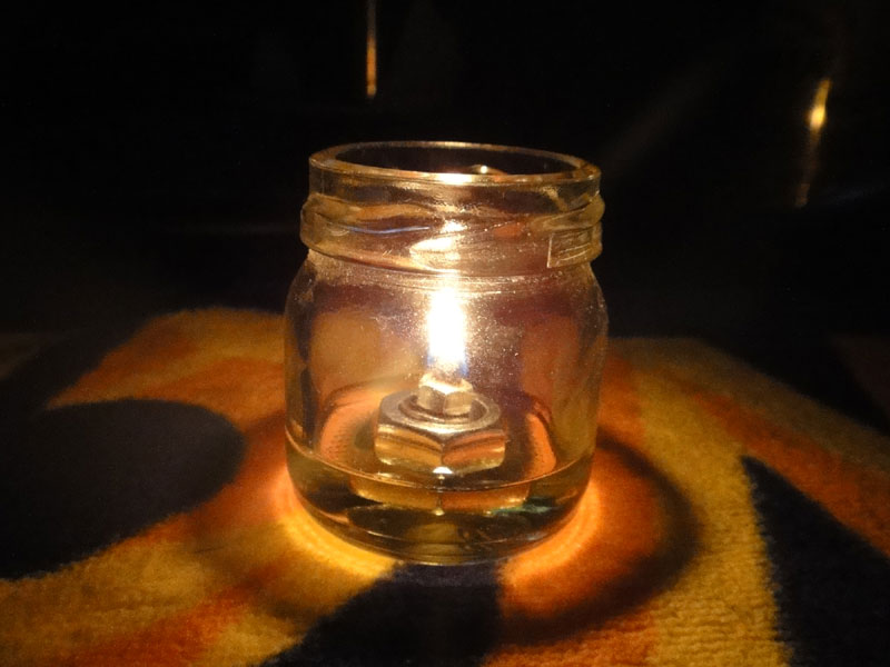 サラダオイルを入れてウエスで芯を作り点火
