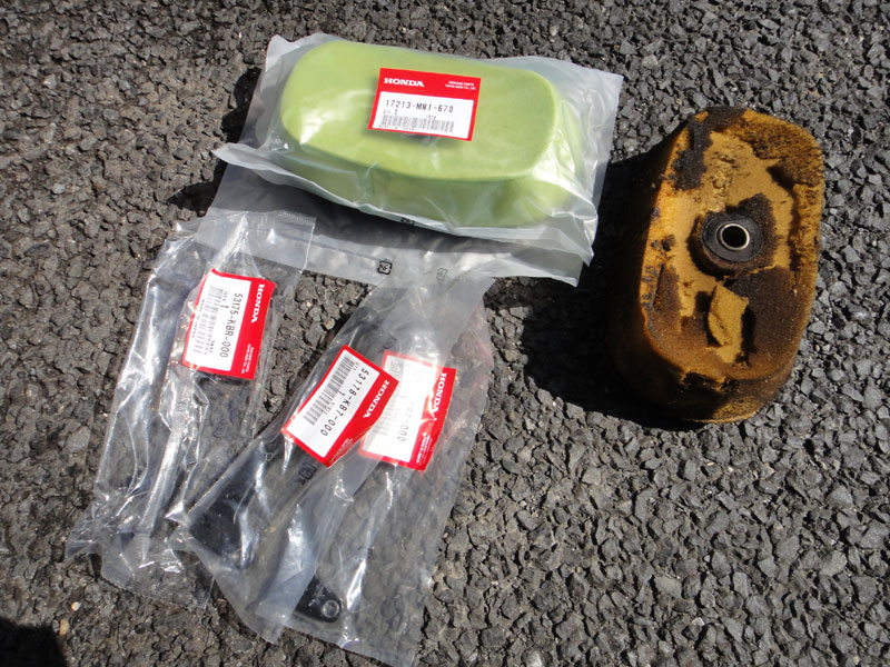 折れたクラッチレバーとエアフィルター