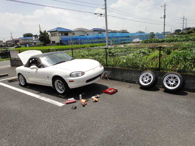 草レースに向けてブレーキパットとタイヤの交換