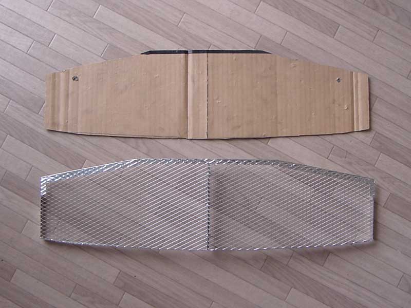 ダンボールで型紙を作り それに合わせメッシュ加工