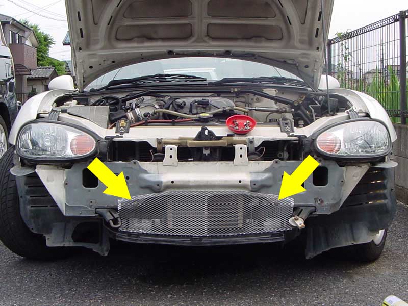 ピッカピカのオイルクーラー保護のため メッシュグリルを作ってみた。