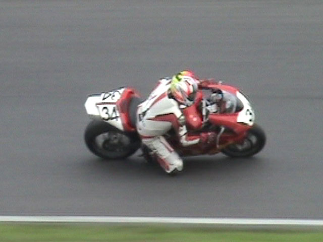 最終コーナーでのスリップダウン、マシンは最小限の故障って感じ