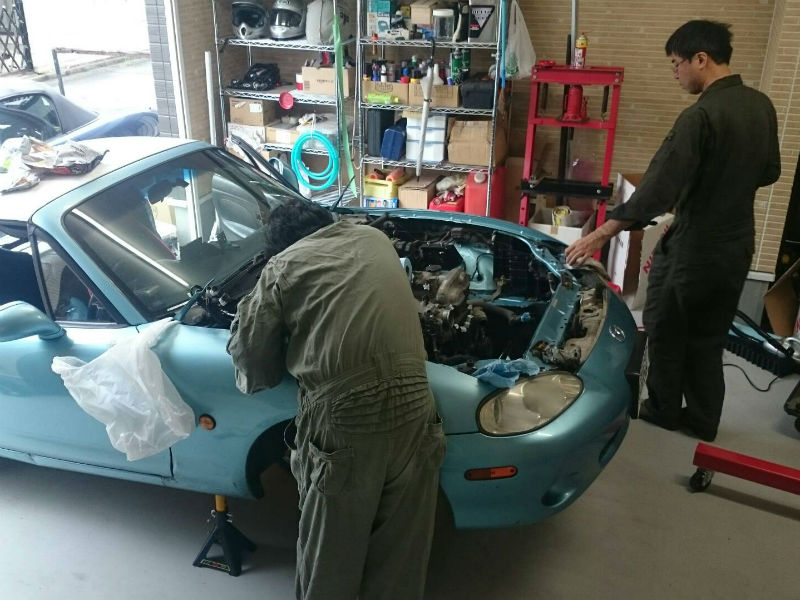 そんなガレージにロードスター4台が集まり整備大会!